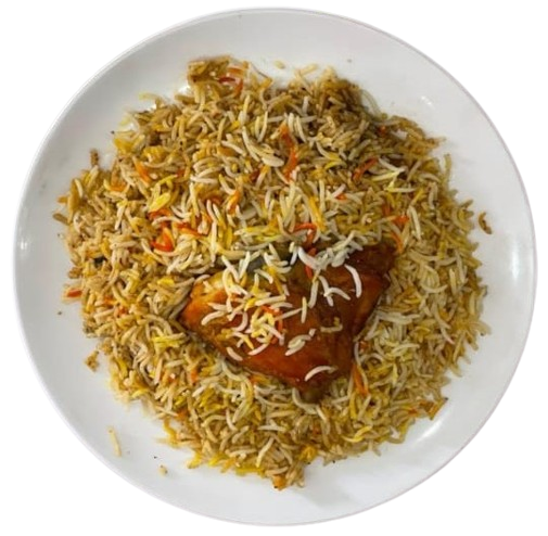 A Plate of Traditional Biryani with 1 steamed chicken piece